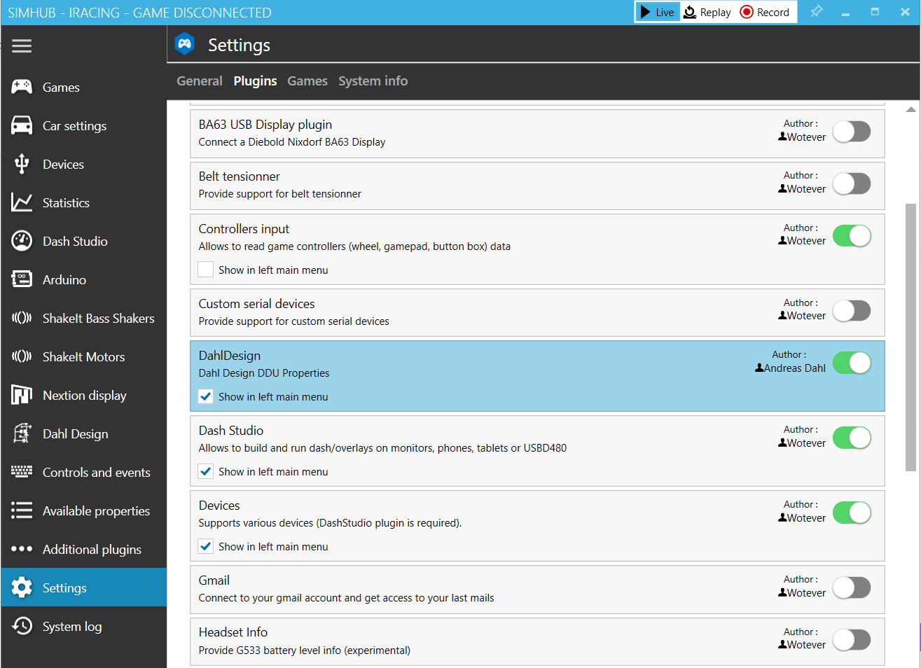 ### Plugin in SimHub